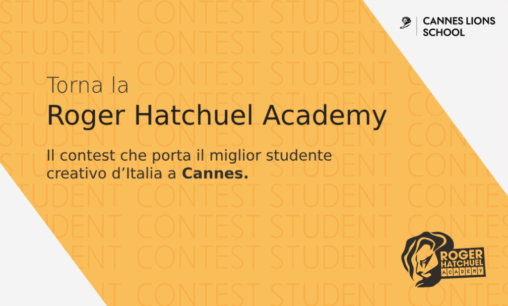 ADCI, in qualità di Cannes Lions Representative per l’Italia, apre il contest nazionale per selezionare il/la giovane talento che rappresenterà il nostro Paese alla Roger Hatchuel Student Academy 2026, uno dei programmi formativi più prestigiosi al mondo per chi vuole intraprendere una carriera nella creatività e nella comunicazione.